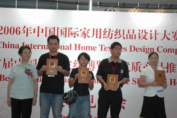 中國貿促會(hui) 紡織行業(ye) 分會(hui) 副會(hui) 長富榮沛(左二)為(wei) 獲獎者頒獎