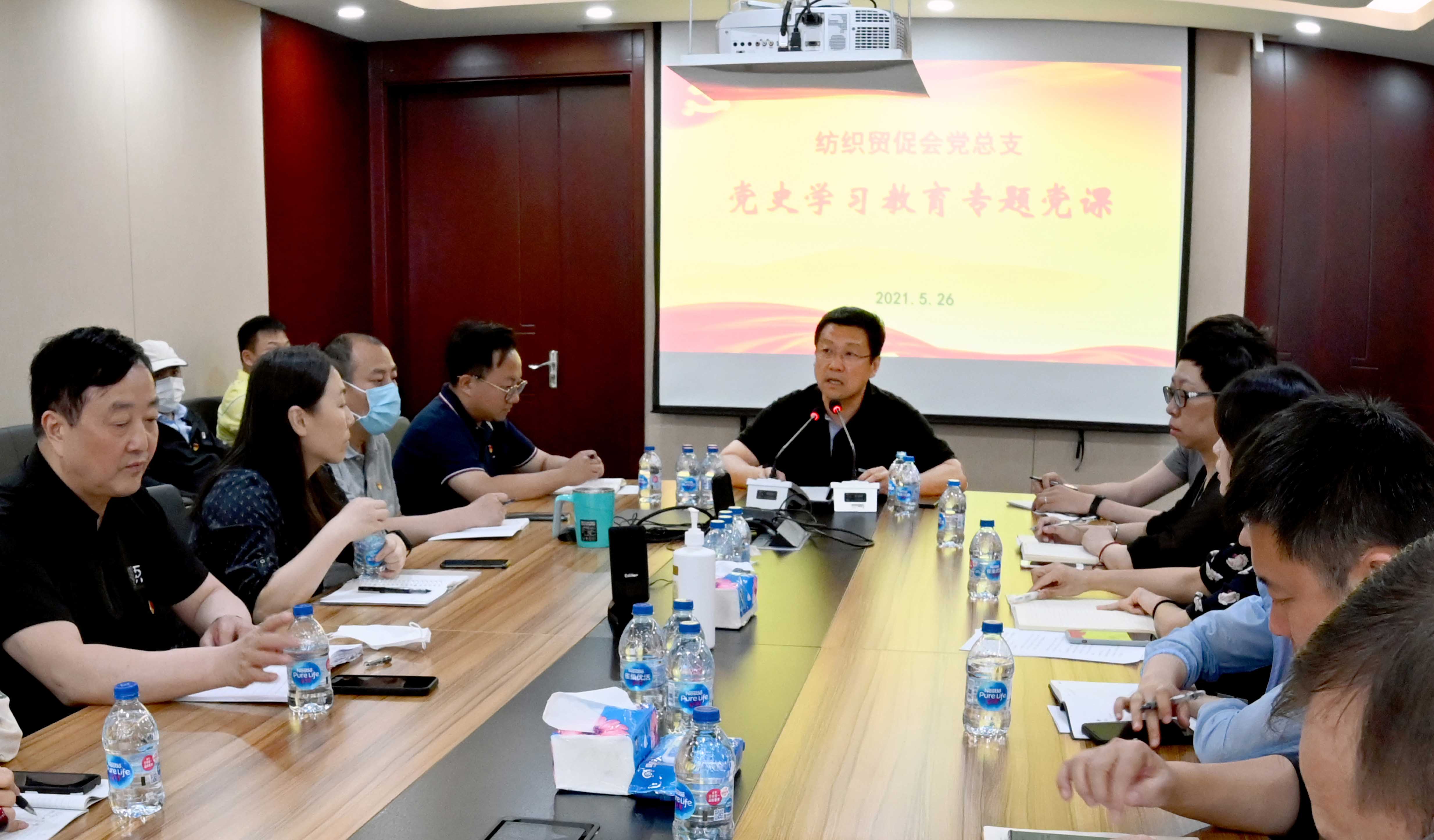根據中國紡聯黨(dang) 委黨(dang) 史學習(xi) 教育工作安排,2021年5月26日下午,紡織貿促會(hui) 黨(dang) 總支書(shu) 記梁鵬程為(wei) 全體(ti) 黨(dang) 員上了一堂黨(dang) 史學習(xi) 教育專(zhuan) 題黨(dang) 課。