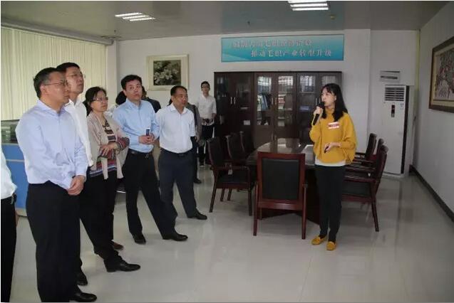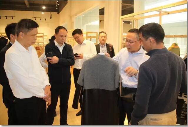 ▲徐會(hui) 長一行考察了大朗毛織服裝品牌推廣中心,設計師協會(hui) 會(hui) 長陳敬東(dong) 展示新型阻燃材料在大朗毛織方麵的應用。