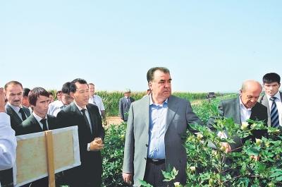 塔吉克斯坦總統拉赫蒙視察經研銀海公司在塔的棉花科研示範田(資料圖片)