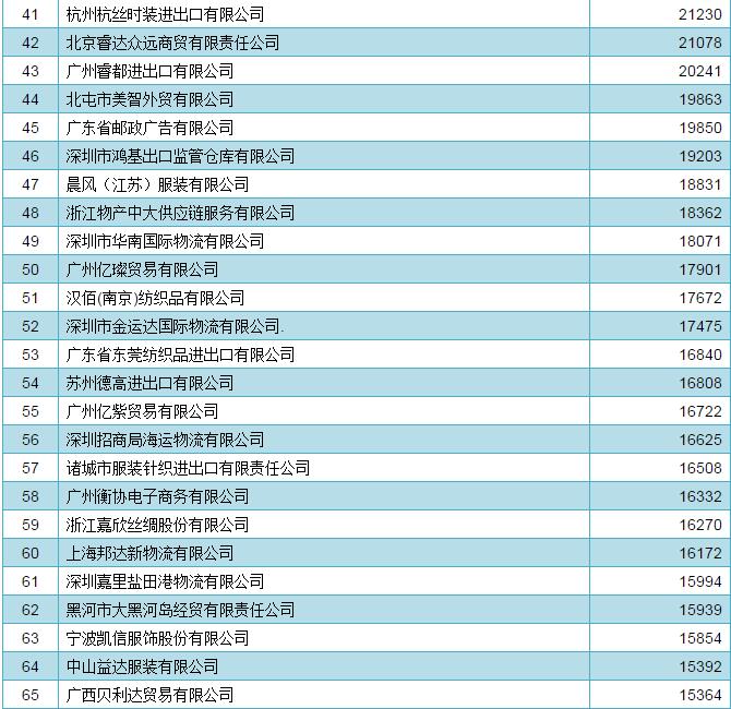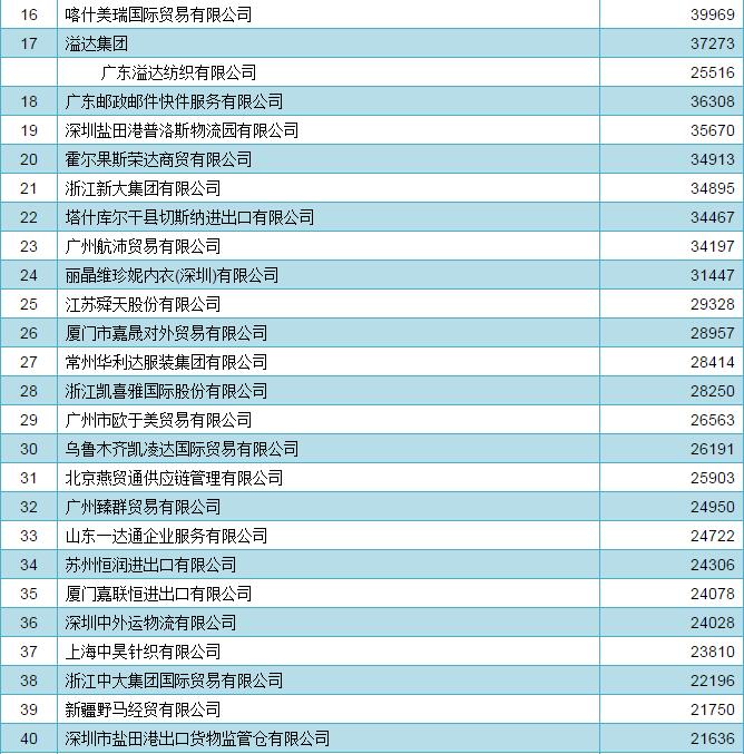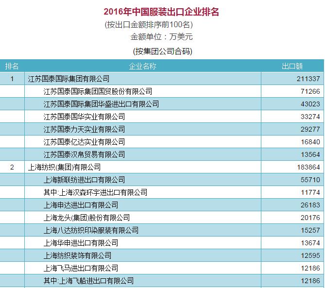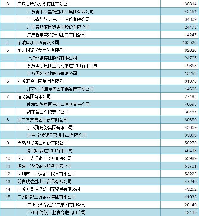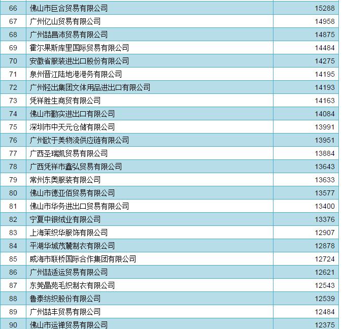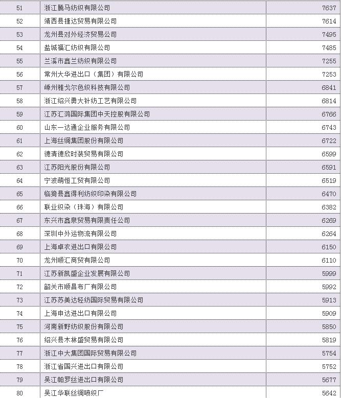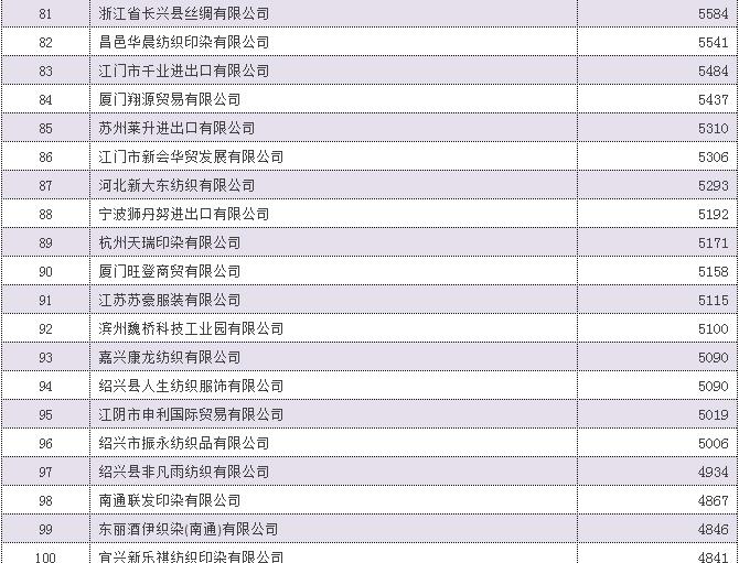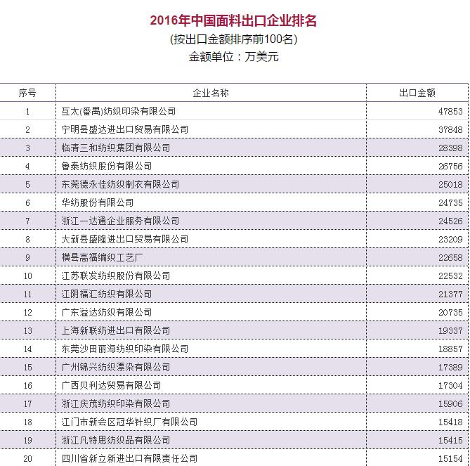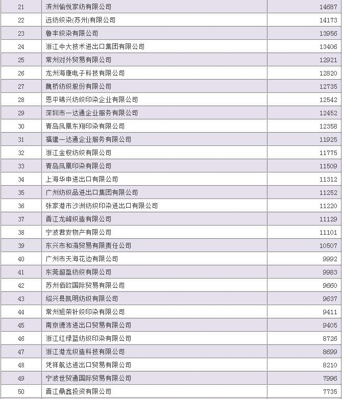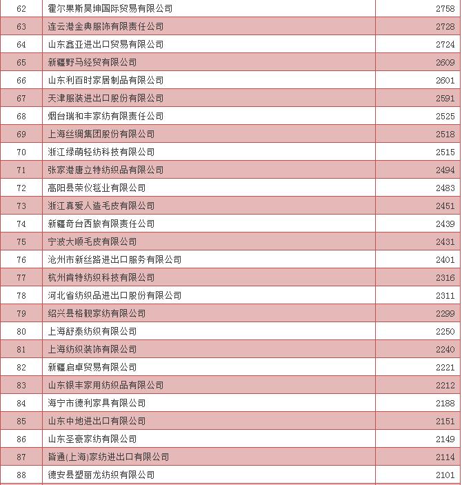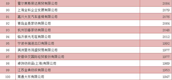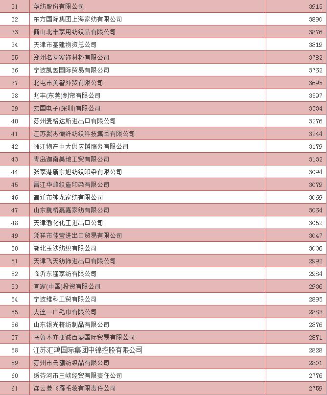 2016年中國家用紡織品出口企業(ye) 排名