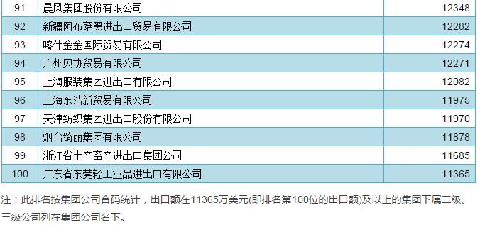 (按出口金額排序前100名)