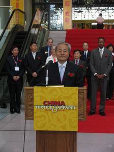 第八屆"中國紡織品服裝貿易展覽會(hui) "今天在這裏隆重開幕了,我謹代表中國紡織工業(ye) 協會(hui) ,向專(zhuan) 程出席本屆展覽會(hui) 開幕式的各位貴賓表示熱烈的歡迎和誠摯的感謝!向多年來一直關(guan) 心、指導和大力支持我們(men) 舉(ju) 辦該展覽會(hui) 的中國駐美外交機構,和大力支持我們(men) 在紐約辦展的美國紐約市市政府以及為(wei) 展會(hui) 順利舉(ju) 辦而付出辛勤努力的美方合作夥(huo) 伴表示衷心的感謝!向所有參展商和美國商貿界人士以及中美兩(liang) 國新聞界的朋友們(men) 表示熱烈歡迎!