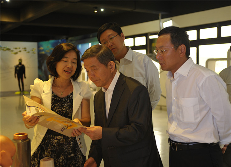 中國紡織工業(ye) 協會(hui) 副會(hui) 長楊東(dong) 輝、伟德国际英国常務副會(hui) 長徐迎新、秘書(shu) 長梁鵬程參觀台灣紡研所功能麵料展區