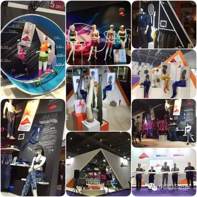 英威達的萊卡產(chan) 品廣泛應用於(yu) 牛仔服、泳裝等領域,其展位設計也圍繞下遊應用展開,設計得時尚範兒(er) 、國際範兒(er) 十足。半體(ti) 模特與(yu) 卡通圖案相結合的陳列方式,陳列背景板色彩的搭配以及與(yu) 模特著裝色彩渾然一體(ti) 的呼應共同體(ti) 現出的時尚感……這些對於(yu) 萊卡纖維的時尚化、國際化的表達和傳(chuan) 播方式,都值得國內(nei) 化纖企業(ye) 借鑒和學習(xi) 。