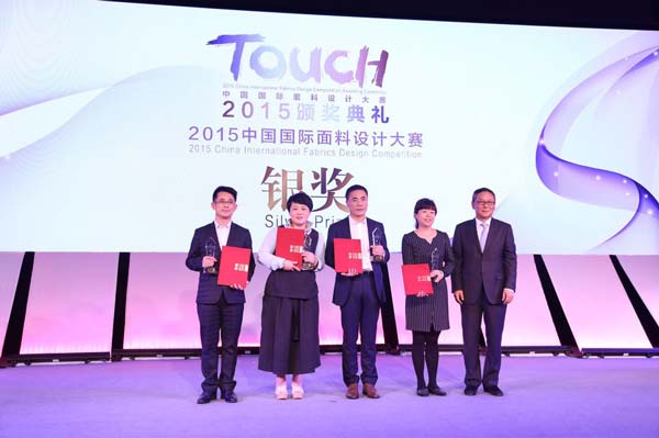 2015年度設計大賽金獎由魯泰紡織股份有限公司、山東(dong) 濟寧如意毛紡織股份有限公司榮獲,中國紡織工業(ye) 聯合會(hui) 副會(hui) 長孫瑞哲上台進行了隆重頒獎
