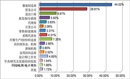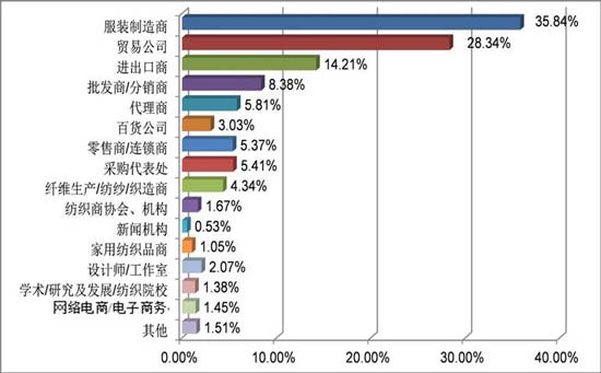 其中現場登錄的國內(nei) 觀眾(zhong) 按其行業(ye) 性質分類,各占國內(nei) 觀眾(zhong) 數量的百分比為(wei) :