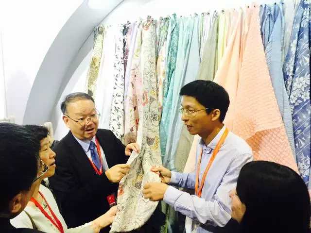 在參觀完博拉纖維後,高勇一行來到無錫一棉紡織集團的展位。據了解無錫一棉此次參展的品牌為(wei) “太湖”TALAK,主要展示的有高支襯衫的麵料。無錫一棉董事長周曄?透露,目前公司生產(chan) 的200支紗的產(chan) 品在客戶中的關(guan) 注度非常高,隨著市場的需求層次變得越來越高,200支以上的產(chan) 品開始被下遊企業(ye) 接受,已經進行批量化大規模生產(chan) 。