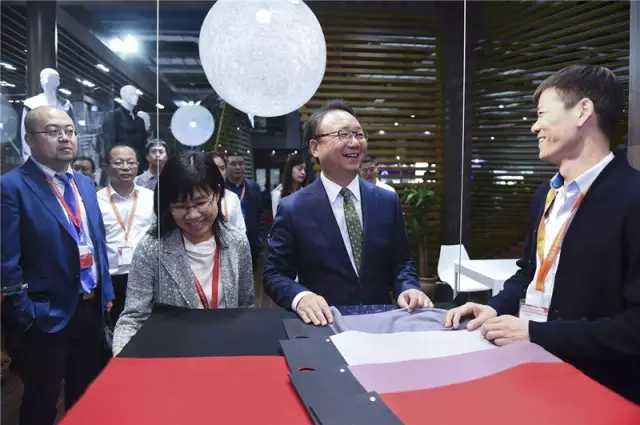 10月11日,中國紡織工業(ye) 聯合會(hui) 秋季聯展在國家會(hui) 展中心(上海)拉開大幕,中紡聯黨(dang) 委書(shu) 記王天凱、原會(hui) 長杜鈺洲、會(hui) 長孫瑞哲、秘書(shu) 長高勇,副會(hui) 長楊紀朝、夏令敏,黨(dang) 委副書(shu) 記陳偉(wei) 康、紀委書(shu) 記王久新,副會(hui) 長徐迎新、陳大鵬、李陵申、孫淮濱,原副會(hui) 長張延愷、徐文英、張莉等領導在展會(hui) 主辦方負責人陪同下參觀了展會(hui) 。