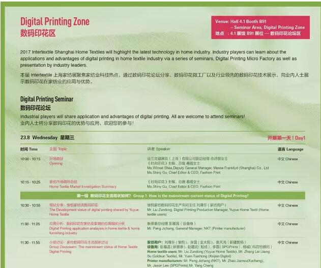我們(men) 很榮幸能邀請業(ye) 內(nei) 人士在數碼印花論壇中為(wei) 大家分享數碼印花的主流現狀及未來發展趨勢、在家紡及家裝的設計應用和解決(jue) 方案等豐(feng) 富信息!