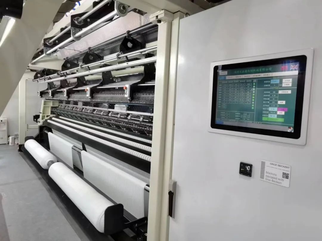 五洋紡機GE2285高速雙針床經編機,轉速達到800rpm,采用嵌式舌針、電子橫移,適用於織造床墊及三明治織物等。GE2268數控特裏科高速經編機,幅寬63英寸,開機轉速為1250 rpm,適用於各種提花絨布。GE385高速智能絨類雙針床經編機,幅寬100英寸,生產轉速1000rpm,適用於織造服裝、毛絨玩具、家紡等織物。
