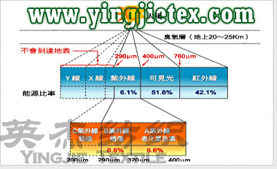 防紫外線麵料對180400m波段的紫外線,特別是UV-AUV-B有良好的吸收和發射作用,屏蔽性強,紫外線透過率<3%,洗滌多次後防紫外線率仍達85%以上,特別適用於(yu) 野外工作服、高原服、及太陽傘(san) 等使用。