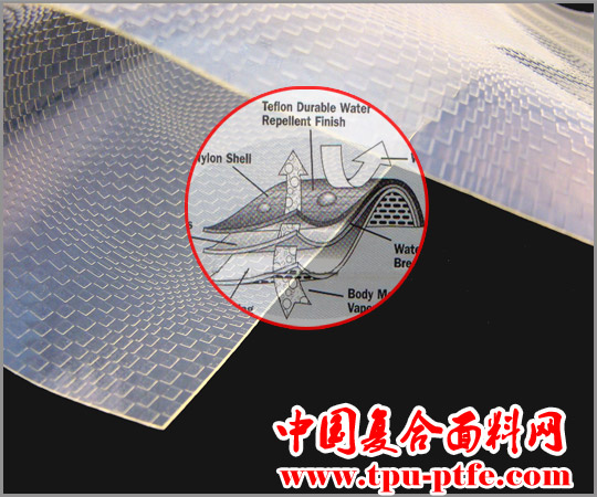 利用聚四氟乙烯塑料樹脂的成孔特性,采用雙向拉伸方法製成的微孔薄膜。該膜表麵每平方厘米能達到十多億(yi) 個(ge) 微孔,每個(ge) 微孔直徑(0.1μm-0.5μm)比水分子直徑(20μm-100μm)小幾百倍,比水蒸氣分子(0.0003μm-0.0004μm)大上萬(wan) 倍,使水蒸氣能通過,而水滴不能通過,利用這種微孔結構可達到優(you) 秀的防水透濕功能;另外因為(wei) 該孔極度細小和縱向不規格的彎曲排列,使風不能透過,從(cong) 而又具有防風性和保暖性等特點。經與(yu) 其他麵料複合後,廣泛應用於(yu) 軍(jun) 隊服裝,醫用服裝,休閑服裝,消防、防毒、浸水作業(ye) 等特種防護服,戶外運動服裝,鞋、帽、手套等輔料以及睡袋、帳篷、雨具等材料。