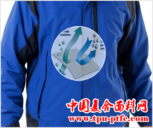 現在最有名的衝(chong) 鋒衣麵料就是GORE-TEX,此外還有EVENT,SYMPATEX等。這類麵料的特點都是采用一種微孔薄膜,微孔直徑比氣體(ti) 分子大,但比水滴小,所以可以在防水的同時,又保持良好的透氣效果。