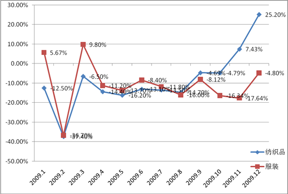 日前,根據海關(guan) 總署公布的2009年出口整體(ti) 數據,2009年12月我國紡織品出口同比增長達25%,服裝也隻有不到5%的同比負增長,是全年出口恢複最好的一個(ge) 月。