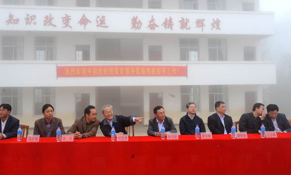 4月8日,中國紡織工業(ye) 協會(hui) 杜鈺洲會(hui) 長率領中國國際貿易促進委員會(hui) 紡織分會(hui) 、中國紡織攝影協會(hui) 、中國紡織工業(ye) 協會(hui) 流通分會(hui) 、廣州白馬服裝市場以及廣州名豪服飾公司的負責人,看望了雲(yun) 南元陽縣新街鎮中國紡織貿促會(hui) 希望小學的師生們(men) ,並送去了700套《新華字典》和學生校服,以表達紡織人對他們(men) 的關(guan) 懷。