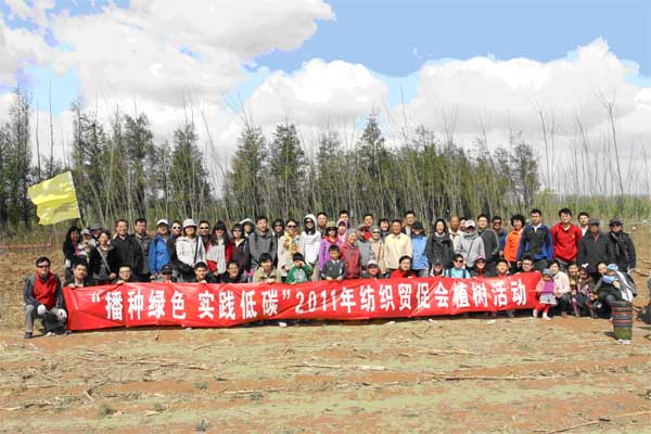 9點30許,紡織貿促會(hui) 的常務副會(hui) 長徐迎新,副會(hui) 長陳偉(wei) 康來到勞動現場,和參加植樹的員工一起,為(wei) 一顆顆樹苗鏟土填坑、揮鍬培土、提水澆灌,共同種下樹苗200餘(yu) 棵。