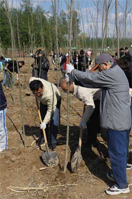 10點30許,植樹活動圓滿結束。今年是國際森林年,也是全民義(yi) 務植樹運動開展30周年。紡織貿促會(hui) 2011"播種綠色 實踐低碳"植樹活動正是抓住契機,緊緊圍繞人文北京、綠色北京發展戰略,用自己的一份薄力為(wei) 北京綠化美化建設做出了貢獻。