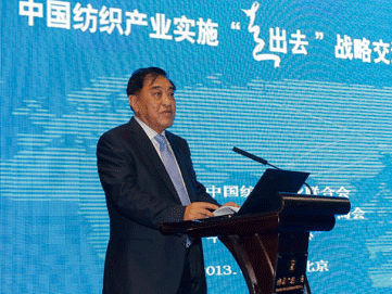 今天,中國紡織工業(ye) 聯合會(hui) 在北京召開“中國紡織產(chan) 業(ye) 實施‘走出去’戰略交流大會(hui) ”,這是在加快建設紡織強國的重要時期,第一次較大規模地組織,政府、研究部門、各兄弟協會(hui) 、有關(guan) 機構以及全產(chan) 業(ye) 鏈的紡織人共聚一堂,就紡織產(chan) 業(ye) “走出去”的宏觀背景以及相關(guan) 路徑、經驗、方法進行深入交流的重要會(hui) 議。我謹代表中國紡織工業(ye) 聯合會(hui) 對各位的到來表示熱烈的歡迎和衷心的感謝!在這裏,我想結合近年來的發展實踐,就我國紡織產(chan) 業(ye) 當前實施“走出去”戰略所麵臨(lin) 的形勢和任務談幾點看法,供各位參考。