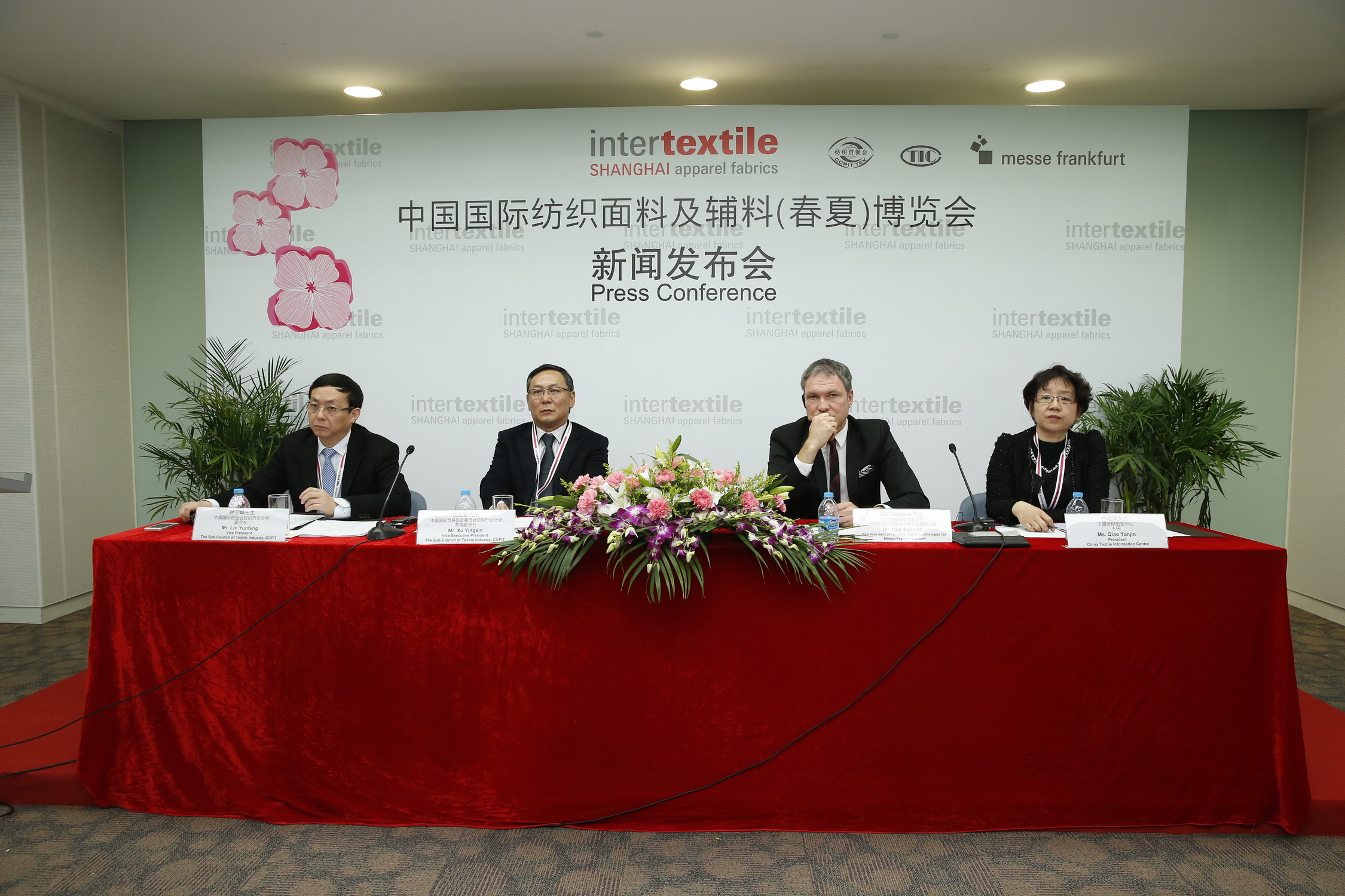 由中國紡織工業(ye) 聯合會(hui) 主辦,伟德国际英国、中國紡織信息中心和法蘭(lan) 克福展覽(香港)有限公司共同承辦的中國國際紡織麵料及輔料(春夏)博覽會(hui) ,於(yu) 2014年3月3日在上海世博展覽館盛大開幕。中國國際紡織麵料及輔料(春夏) 博覽會(hui) 新聞發布會(hui) 也於(yu) 開幕同日舉(ju) 行。中國國際貿促會(hui) 紡織行業(ye) 分會(hui) 常務副會(hui) 長徐迎新、法蘭(lan) 克福展覽有限公司紡織品及紡織技術全球品牌展副總裁Olaf Schmidt、中國紡織信息中心主任喬(qiao) 豔津出席發布會(hui) 。會(hui) 議由中國國際貿促會(hui) 紡織行業(ye) 分會(hui) 副會(hui) 長林雲(yun) 峰主持。