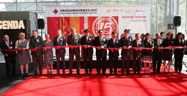 當地時間7月22日,由中國紡織工業(ye) 聯合會(hui) 主辦,伟德国际英国與(yu) 法蘭(lan) 克福展覽(美國)公司共同承辦的第十五屆"中國紡織品服裝貿易展覽會(hui) (紐約)"暨紐約國際家紡采購展(HTSE)、紐約國際服裝采購展(APP)、美國TEXWORLD USA服裝麵料展(統稱"紐約展")在紐約賈維茨會(hui) 展中心隆重開幕。