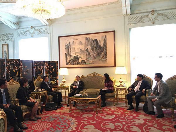 代表團一行還拜見了大使館經商處韓兵公使銜參讚。