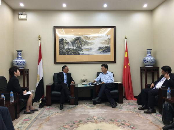 下午,宋愛國大使與(yu) 代表團一行拜會(hui) 埃及工業(ye) 及貿易部,並與(yu) Tareq Qabil部長進行會(hui) 談。