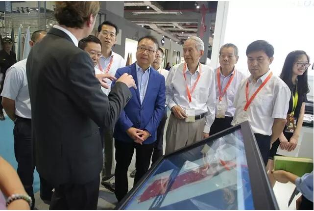 在特朗斯福紡織印花(杭州)有限公司的展位上,德國特朗斯福轉移印花紙有限公司總經理邁克·沙德向孫瑞哲一行介紹了企業(ye) 的轉移印花技術,孫瑞哲在了解情況後認為(wei) ,該企業(ye) 相關(guan) 技術非常嚴(yan) 謹出色,並對企業(ye) 對接下遊客戶時能夠同步技術與(yu) 設計的做法表示了稱讚。