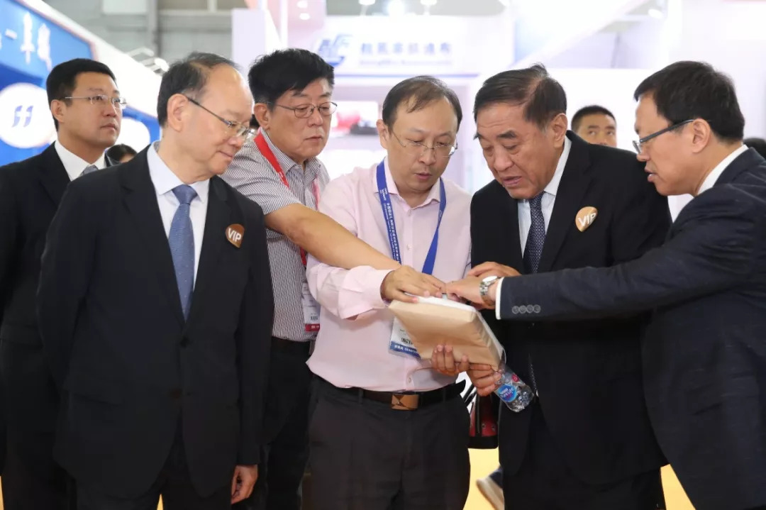 開展伊始,中國紡織工業(ye) 聯合會(hui) 黨(dang) 委書(shu) 記兼秘書(shu) 長高勇,會(hui) 長孫瑞哲,原會(hui) 長王天凱,黨(dang) 委副書(shu) 記陳偉(wei) 康,副會(hui) 長徐迎新、李陵申,中國工程院院士孫晉良、俞建勇,工信部消費品工業(ye) 司副司長曹學軍(jun) ,國家發展和改革委員會(hui) 產(chan) 業(ye) 協調司張曙光等領導及嘉賓參觀了展會(hui) 。他們(men) 先後來到了位於(yu) N3館內(nei) 的創新產(chan) 品展示區,以傳(chuan) 統服飾,航空航天,環保、醫療、智能服裝,安防、應急、特品等四個(ge) 品類主線進行參觀。隨後兵分兩(liang) 路,分別走訪了設備及配件展區、產(chan) 業(ye) 用紡織品展區、非織造布展區等多個(ge) 展區,並與(yu) 參展企業(ye) 進行了深入交流。