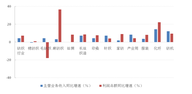 圖3:紡織分行業(ye) 主營業(ye) 務收入和利潤增長情況