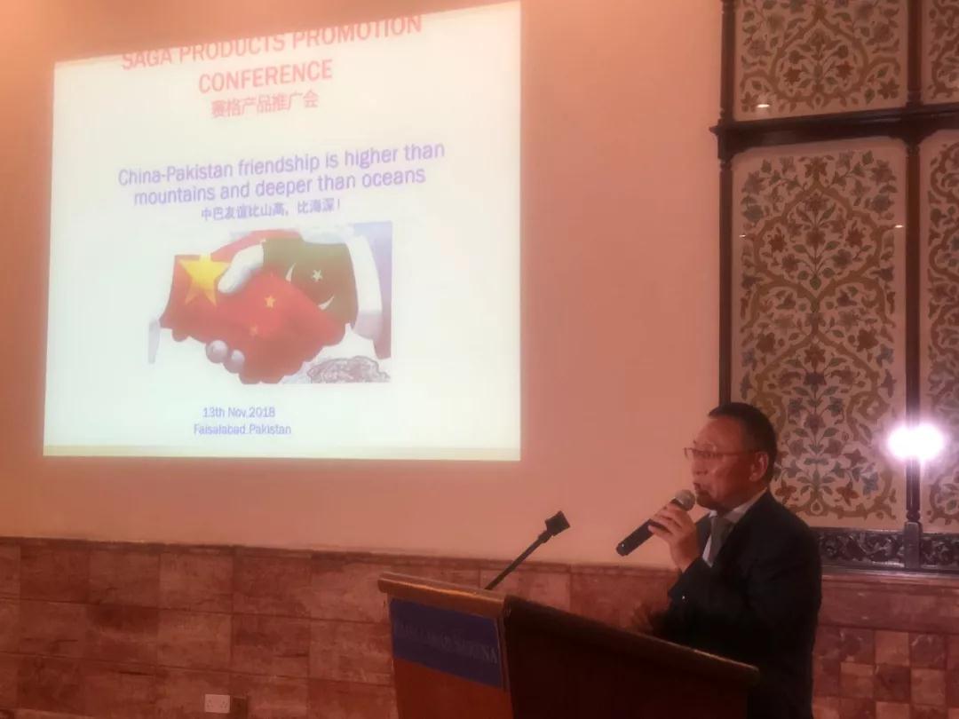 代表團在巴基斯坦紡織產(chan) 業(ye) 集群地費薩拉巴德期間,參加了江蘇賽格紡織機械有限公司新品發布會(hui) 。中國紡織工業(ye) 聯合會(hui) 徐迎新副會(hui) 長在致辭中提到,近年來,中國紡織機械企業(ye) 同巴基斯坦紡織企業(ye) 的合作也日益升溫,中國的紡織機械已超過日本和德國成為(wei) 巴基斯坦紡織機械最大的進口來源國。很高興(xing) 此次見證中巴貿易開花結果,看到中國企業(ye) 自主研發的,具有國際先進水平的印染設備進入巴基斯坦市場,並得到用戶認可,通過設備升級,助力巴基斯坦紡織企業(ye) 提質增效。通過該交流會(hui) ,更多的巴基斯坦印染骨幹企業(ye) 了解中國優(you) 質紡機企業(ye) 的產(chan) 品,有利於(yu) 兩(liang) 國企業(ye) 優(you) 勢互補,通過技術創新,設備升級,激發企業(ye) 活力。
