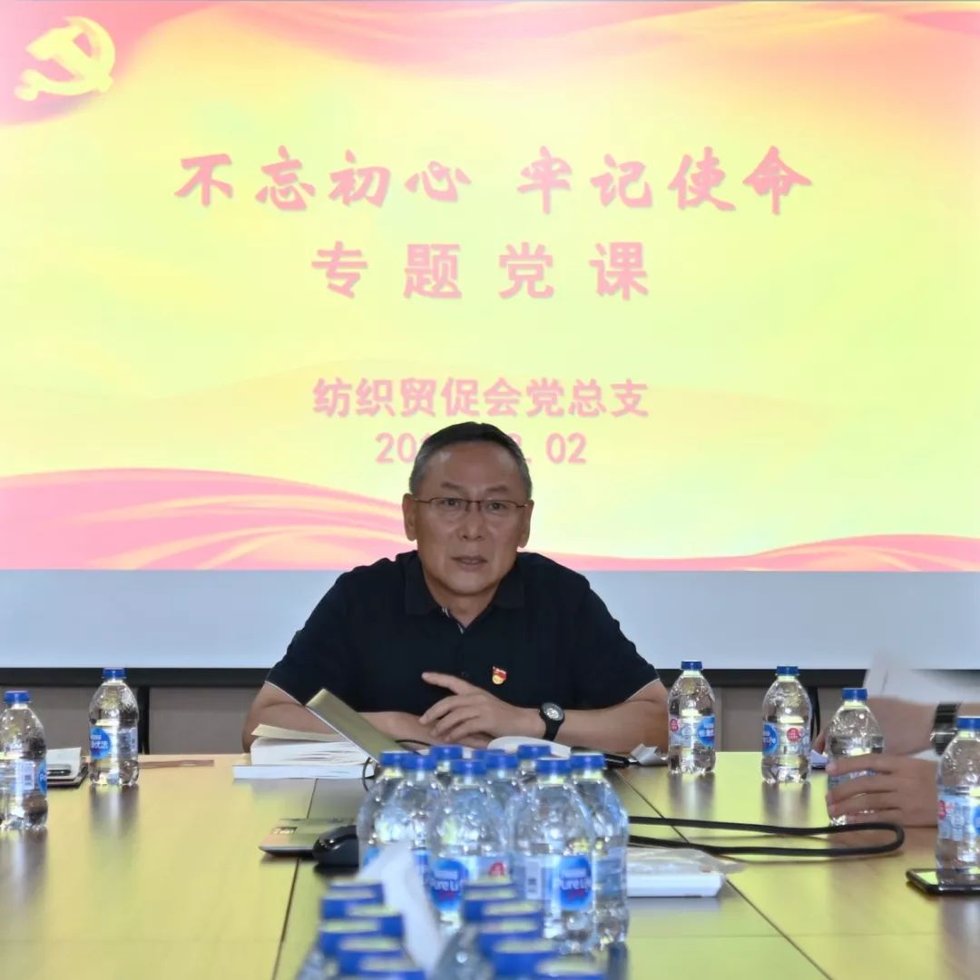 接下來,陳偉康以“堅持黨的政治建設,讓黨的旗幟在中紡聯高高飄揚”為題,與全體黨員進行了專題黨課分享。他指出:“中紡聯黨委作為黨的一級組織,在中紡聯的自身發展建設中,堅持黨的領導,以政治建設為統領,積極開展黨建工作,教育管理好黨員隊伍,充分發揮好黨員領導幹部和全體黨員的作用,建設和優化中紡聯的政治生態,不斷提升為紡織行業服務的能力和水平,推動行業高質量發展,是中紡聯黨委的責任所在。”
