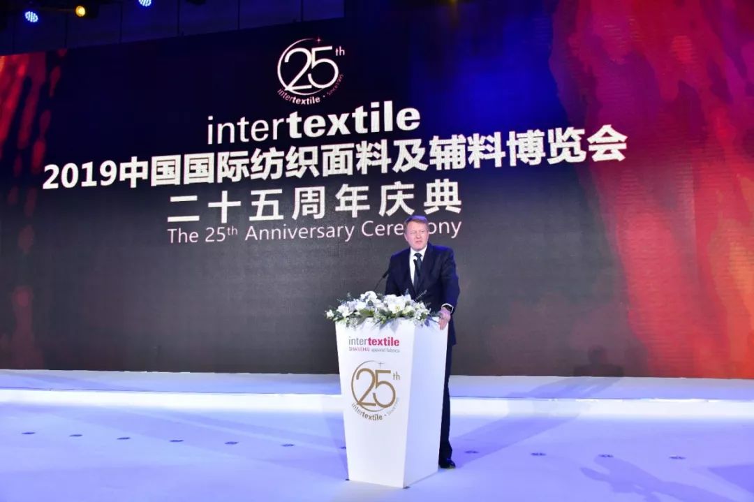 法蘭(lan) 克福展覽集團董事會(hui) 成員鮑思豐(feng) 在致辭時表示,回顧25載春秋,intertextile取得了許多不平凡的成績,而這些都離不開在座各位的支持和幫助。回顧25載春秋,intertextile不斷創新,銳意進取,為(wei) 全球紡織產(chan) 業(ye) 同仁搭建了一個(ge) 集貿易和交流的高效平台,也為(wei) 整個(ge) 行業(ye) 發展帶來了無限可能。今晚,我們(men) 相聚在此,舉(ju) 杯同慶,並借此機會(hui) 展望未來。願我們(men) 繼續砥礪前行,為(wei) 全球紡織產(chan) 業(ye) 國際交流與(yu) 合作搭建高效平台而努力。