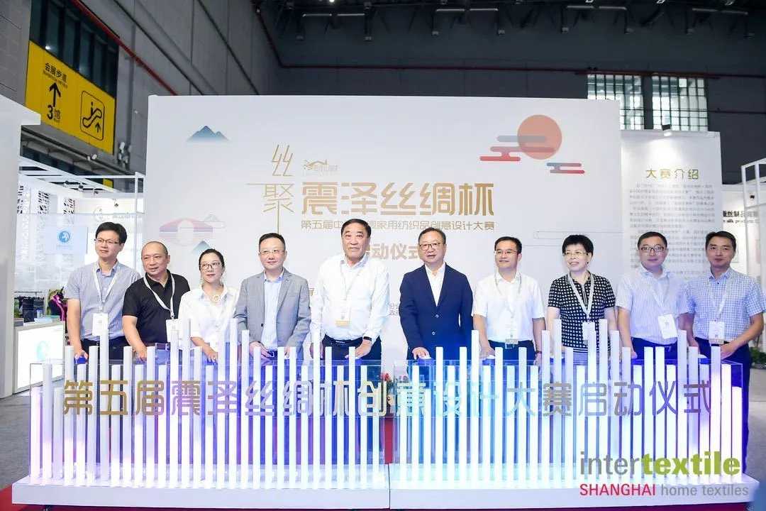 在震澤展區,領導嘉賓一行為(wei) “第五屆 震澤絲(si) 綢杯中國絲(si) 綢家用紡織品創意設計大賽”按下啟動鍵。