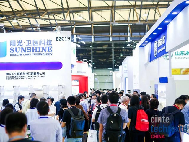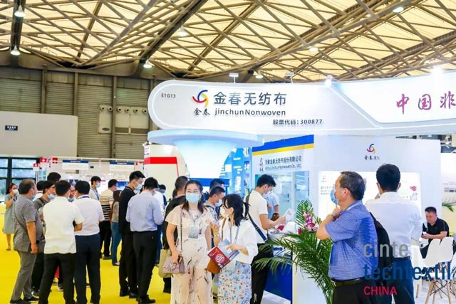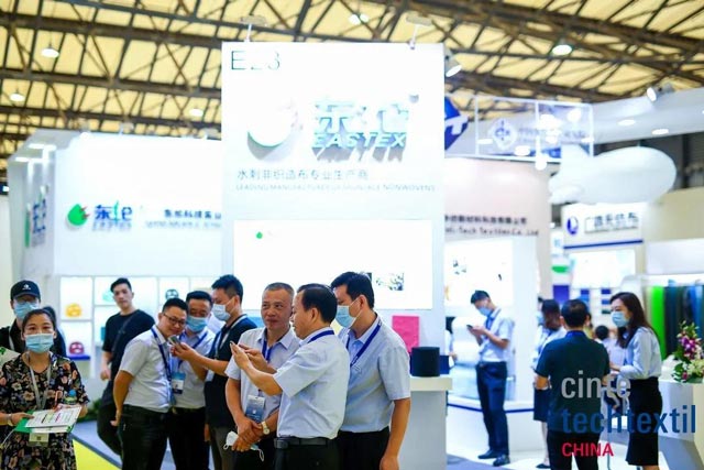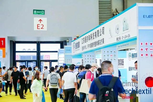 來自產業用的專用設備及配件、專用原料及化學品、非織造布及製品,其他產業用紡織品卷材及製品、功能麵料及防護服裝,以及疫情防控物資等領域的近500家優質企業齊聚展會,並大放異彩。本屆展會規模達到38000平方米,占據了上海新國際博覽中心三大展館,開展第一天隨即吸引了大批專業買家到場。