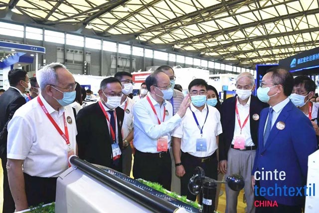 開幕當日上午,中國紡織工業(ye) 聯合會(hui) 黨(dang) 委書(shu) 記兼秘書(shu) 長高勇,會(hui) 長孫瑞哲,原副會(hui) 長許坤元,副會(hui) 長徐迎新、李陵申,中國工程院院士孫晉良,中國工程院院士陳文興(xing) ,中國科學院院士朱美芳,青島大學校長夏東(dong) 偉(wei) 、副校長於(yu) 紅波,香港無紡布協會(hui) 會(hui) 長吳瑩旭,海關(guan) 總署(京津)稅管局、北京海關(guan) ,IFAI以及中國紡聯各單位、各部門嘉賓,在主辦方領導中國國際貿促會(hui) 紡織行業(ye) 分會(hui) 常務副會(hui) 長梁鵬程、中國產(chan) 業(ye) 用紡織品行業(ye) 協會(hui) 副會(hui) 長李桂梅、法蘭(lan) 克福展覽(香港)有限公司高級總經理溫婷的陪同下參觀了本屆展會(hui) 。