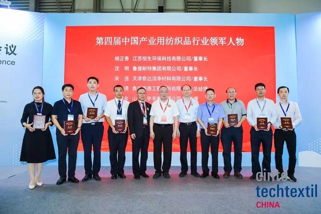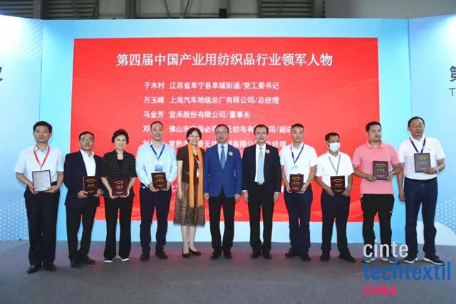 為(wei) 致敬對行業(ye) 作出突出貢獻的企業(ye) 家、管理者和科研工作者,深度挖掘優(you) 秀領軍(jun) 人物的精神特質,進一步激發全行業(ye) 創業(ye) 創新活力,9月2日下午,CINTE2020舉(ju) 行了第四屆中國產(chan) 業(ye) 用紡織品行業(ye) 領軍(jun) 人物頒獎典禮。中國產(chan) 業(ye) 用紡織品行業(ye) 協會(hui) 副會(hui) 長李桂梅宣讀了表彰決(jue) 定:16人榮獲“第四屆中國產(chan) 業(ye) 用紡織品行業(ye) 領軍(jun) 人物”稱號;4人榮獲“第四屆中國產(chan) 業(ye) 用紡織品行業(ye) (青年)領軍(jun) 人物”稱號;高勇、孫瑞哲、許坤元、徐迎新、李陵申、孫晉良、陳文興(xing) 、朱美芳為(wei) 獲獎人員頒獎。