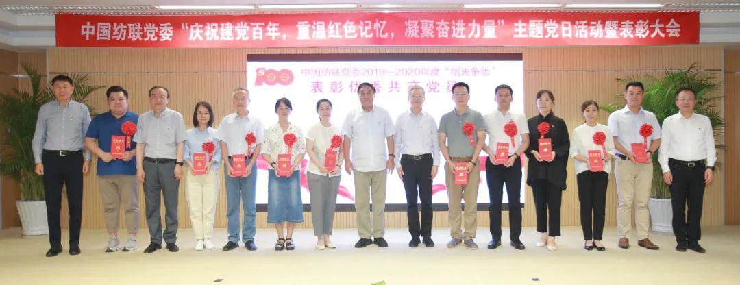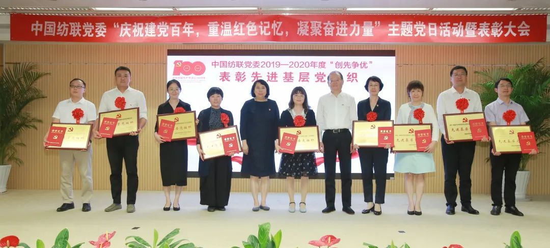 6月29日,中國紡織工業(ye) 聯合會(hui) 舉(ju) 行了“慶祝建黨(dang) 百年,重溫紅色記憶,凝聚奮進力量”主題黨(dang) 日暨中國紡聯黨(dang) 委2019-2020年度“創先爭(zheng) 優(you) ”表彰大會(hui) 。
