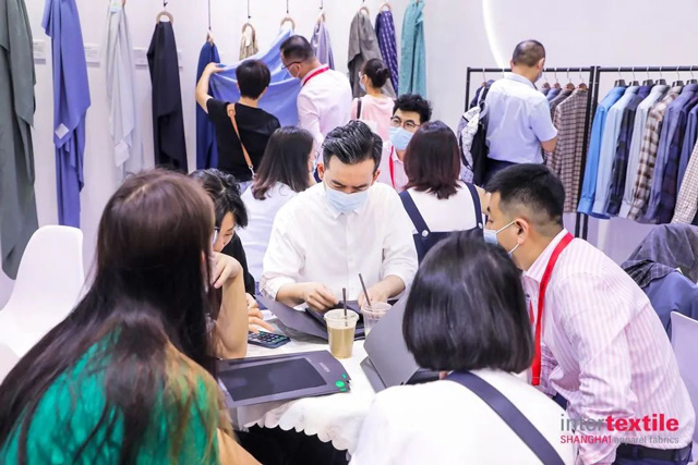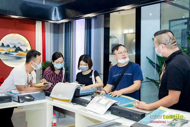 本屆展會(hui) 上,重量級展團及明星企業(ye) 悉數到場,參展企業(ye) 都拿出了看家本領,把前沿科技成果、創新產(chan) 品悉數呈現。中國盛澤展團攜手116家企業(ye) 強勢出擊;南山智尚從(cong) 健康防護、多功能商旅、戶外運動、高品質、女裝等一係列產(chan) 品中凸顯自身麵料服裝一體(ti) 化優(you) 勢;江蘇丹毛推出毛混紡麵料創新,帶來完全可生物降解的聚酯纖維,其安全性達到嬰幼兒(er) 級別標準,擁有手感棉柔、抗起毛球和常溫染色等性能;浙江金晟作為(wei) 天竹纖維西裝麵料開發生產(chan) 基地,持續強化專(zhuan) 精特新,產(chan) 品源於(yu) 自然、回歸自然;三毛集團的金銀絲(si) 段彩女裝襯衫料、漸變襯衫料、雅賽爾條格襯衫料、涼感襯衫料等極具科技感,同時保證舒適環保……孫瑞哲一行對企業(ye) 的創新求變表示認可,並倡導要根據市場消費需求從(cong) 產(chan) 品設計、品牌風格、運營模式等方麵進行轉型。