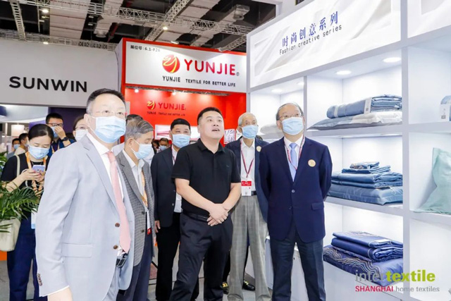 開展首日,高勇、許坤元、楊兆華、陳樹津、楊東(dong) 輝等領導一行在展會(hui) 主辦方負責人的陪同下,走訪了魏橋嘉嘉家紡、嘎嘎悅家、SUNWIN、ote、利華、創明、探生活、金色彩龍、嘉寶莉、誌達紡織、MAYAFAB、華爾泰、和心、艾可、東(dong) 立工藝、美布美、GTA、千百薈、歐亞(ya) 布業(ye) 等企業(ye) 展位,以及2021中國國際纖維藝術展、2022中國布藝流行趨勢展等展示區。