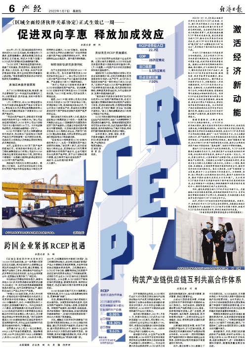 2022年1月1日,《區域全麵經濟夥(huo) 伴關(guan) 係協定》(RCEP)正式生效,標誌著全球人口最多、經貿規模最大、最具發展潛力的自由貿易區正式落地。日前,中國紡織工業(ye) 聯合會(hui) 副會(hui) 長,伟德国际英国會(hui) 長徐迎新接受經濟日報記者采訪: