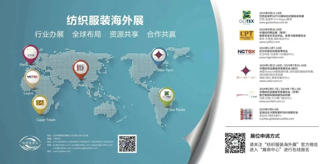 紡織貿促會(hui) 將繼續深入調研與(yu) 開發巴西市場,按照品類體(ti) 係化的與(yu) 供應商溝通參展方案;根據市場可行性係統化的延伸展會(hui) 服務;最重要的是根據市場變化動態調整招商方案,為(wei) 行業(ye) 做好服務,穩固巴西GOTEX展在中巴紡織服裝貿易中橋頭堡的位置。
