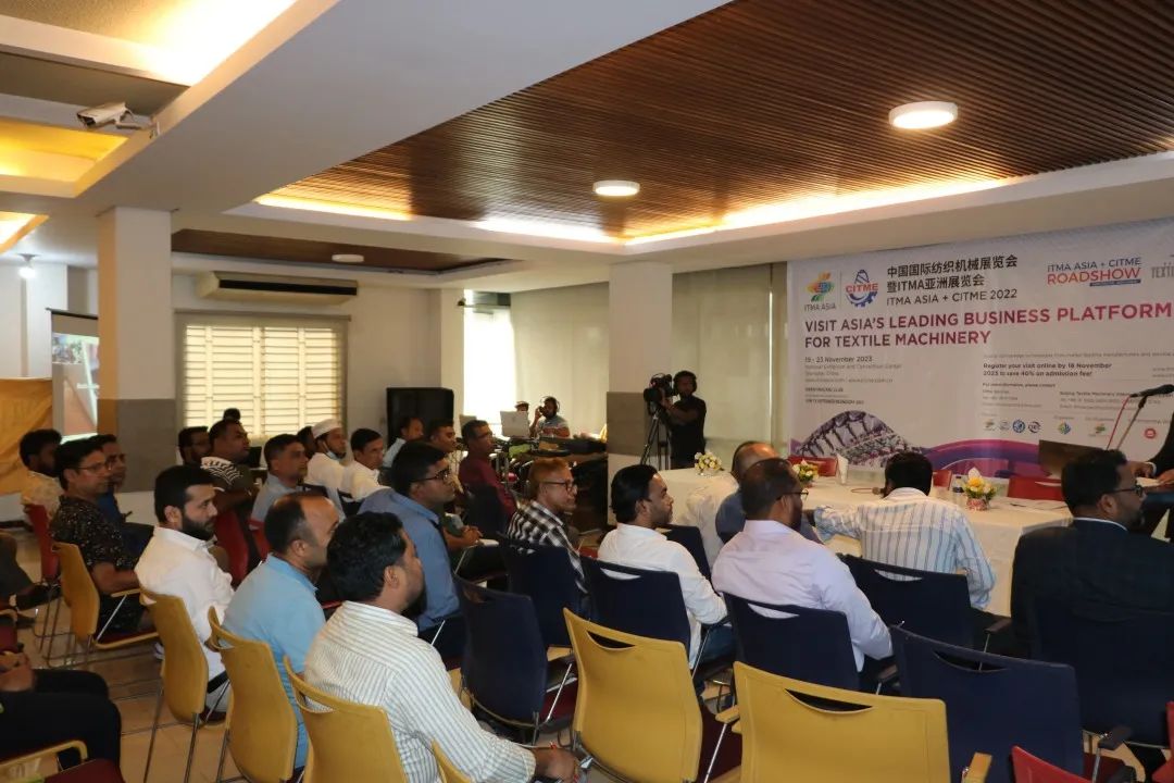繼(以下簡稱“國際紡織機械展覽會”)海外觀眾推介走進印度尼西亞、印度、巴基斯坦後,9月13-14日,國際紡織機械展覽會海外觀眾推介會在孟加拉國兩個城市圓滿舉辦。來自孟加拉Dhaka、Narayanganj等地的紡織商協會代表、紡機用戶企業代表近200人參與推介會,經當地媒體報道引起了強烈反響。