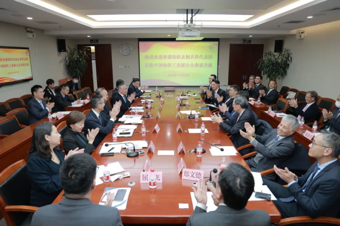 11月27日下午,香港紡織及製衣界代表團到訪中國紡織工業聯合會。雙方就紡織行業運行情況、品牌工作的開展、行業對外投資、新型工業化數智化轉型發展以及社會責任建設等方麵內容展開座談交流。