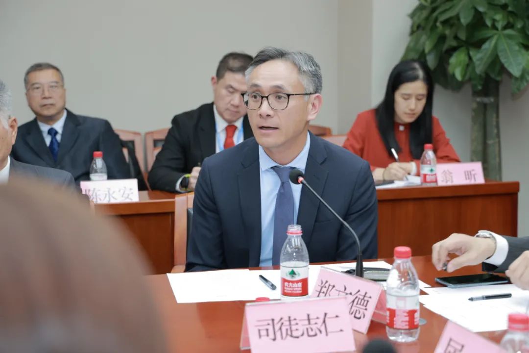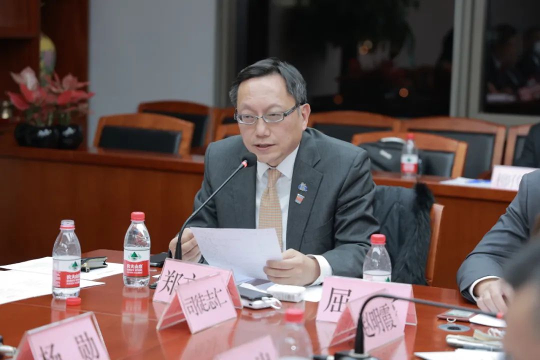 中國紡織工業聯合會會長孫瑞哲,副會長徐迎新、陳大鵬,香港紡織業聯會會長陳亨利,香港紡織業聯會名譽會長、香港特別行政區立法會主席梁君彥,香港紡織業聯會副會長、旭日集團副董事長兼總經理楊勳等領導,以及中國紡聯各業務部門代表、香港代表團成員等共計40餘人出席會議。