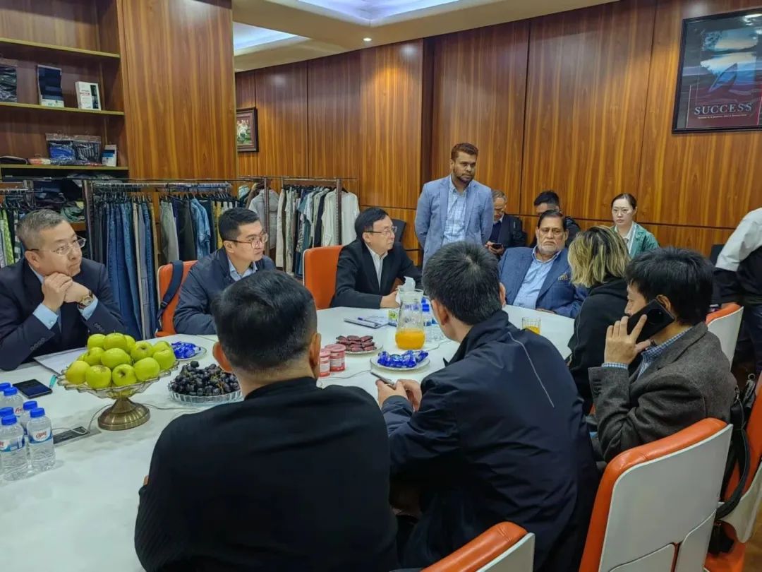 代表團與中國駐孟加拉國大使館、孟加拉中資企業協會、孟加拉中資企業協會紡織服裝分會進行了工作會談。中土孟加拉、奔虎(孟加拉)、新時代服裝、金景紡織化工、江蘇國泰盛華、山東蘭雁、新高紡織、利德成、浙江偉星、廣州棉田、中國光裕、江蘇蘇美達輕紡、Coco Fashion等企業代表參加了工作座談。