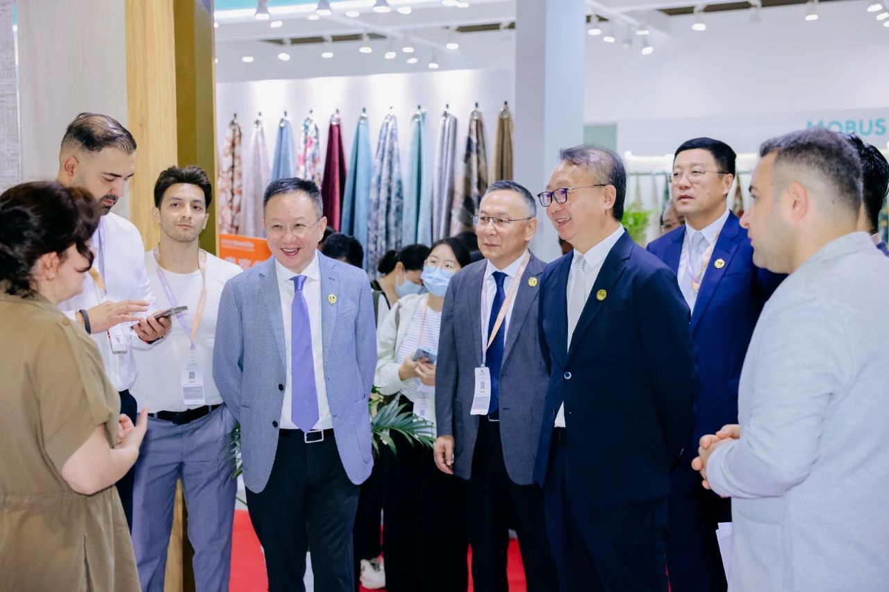 中國紡織工業聯合會會長孫瑞哲,副會長徐迎新、端小平、楊兆華、梁鵬程,原副會長楊東輝,專家谘詢委員會委員曹學軍,中國家用紡織品行業協會會長朱曉紅,法蘭克福展覽(香港)有限公司董事總經理溫婷等領導和嘉賓共同參觀了展覽會。