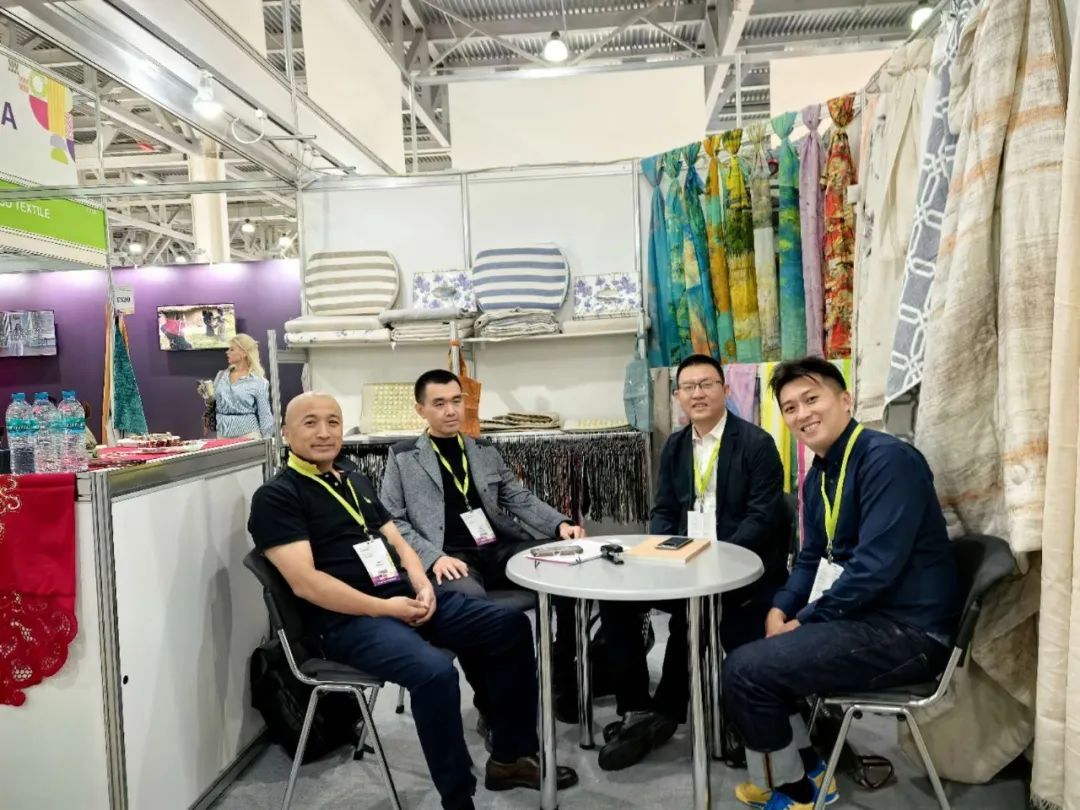 中國家用紡織品行業協會副會長劉兆祥、副秘書長賈昊,伟德国际英国展覽四部副主任朱勤、高級項目經理李玉玨一行四人到俄羅斯家紡展會現場調研企業,與參展企業交流市場反饋情況與產品創新技術成果。