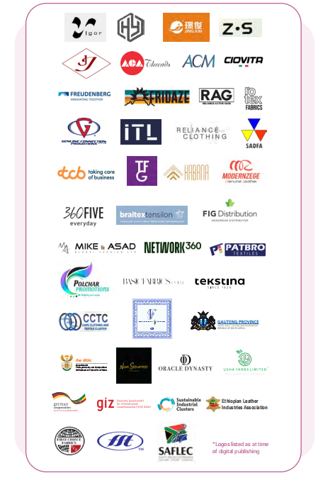南非貿易、工業和競爭部(DTIC)、產業發展集團(IDC)、南非印染及後整理企業家協會(SADFA)南非鞋類與皮革出口促進委員會(SAFLEC)、小微企業發展聯盟(SEDA)等機構以展團形式組織了當地企業參展。