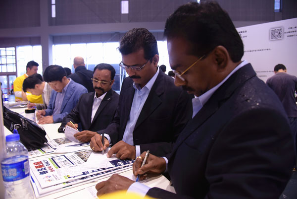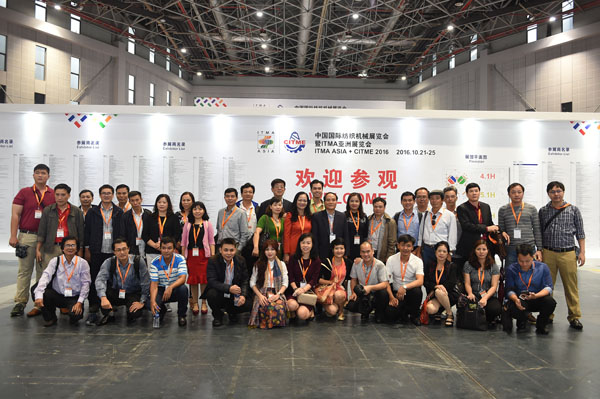 紡機展一向非常重視專(zhuan) 業(ye) 觀眾(zhong) 的邀請工作,不僅(jin) 專(zhuan) 業(ye) 觀眾(zhong) 多,而且國際化程度高。 22日一早,來自印度、俄羅斯以及越南的買(mai) 家參觀團就來到了展會(hui) ,中國紡織機械協會(hui) 會(hui) 長王樹田、伟德国际英国副會(hui) 長梁鵬程代表主辦方向各個(ge) 參觀團表示了熱烈的歡迎,並合影留念。
